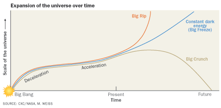 Feature Hanging in the balance What is the fate of the universe? By Elizabeth Quill April 8, 2011 at 12:12 pm - More than 2 years ago Share this:Share Share via email (Opens in new window) Email Click to share on Facebook (Opens in new window) Facebook Click to share on Reddit (Opens in new window) Reddit Click to share on X (Opens in new window) X Click to print (Opens in new window) Print The fate of the universe was supposed to be sealed by the turn of the millennium. In one end-time scenario, the entire universe — from galaxies down to atoms — would rip apart at its seams. Nicolle Rager Fuller COSMIC ARMAGEDDON | The discovery of dark energy made the fate of the universe much more difficult to forecast.