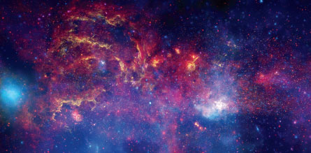 If Earth-dwellers could peer through clouds of dust, they’d see this bustle of activity around Sagittarius A* at the Milky Way’s core (shown in white in lower right).