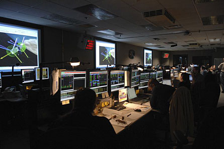 MONITORING PLAN B Engineers at the Space Telescope Operations Control Center at NASA-Goddard monitor results as commands are relayed to switch the Hubble Space Telescope to a backup system.