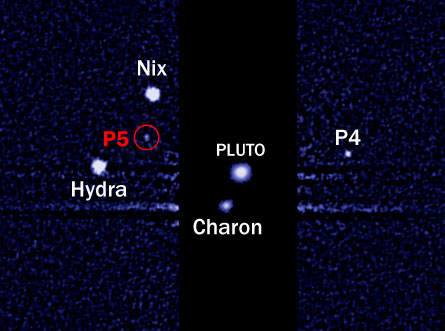 On July 7, ace moon-finder Mark Showalter of the SETI Institute in Mountain View, Calif., spotted the fifth moon, referred to as P5 for now, in images captured by Hubble.