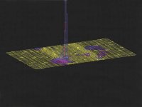Energy spike from a gluon stands alone because a graviton has fled into extra dimensions, taking energy with it. This simulation models an experiment planned for the Tevatron accelerator, slated to start up again in 2001.