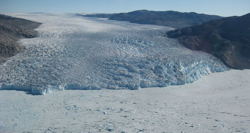 ICE ON THE MOVE The acceleration of iceberg calving from Greenland’s glaciers could level off by midcentury, researchers predict. Shown is the edge of Kangiata Nunata Sermia where the glacier meets the ocean.