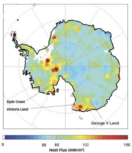 The average heat flux through Antarctic crust is 65 milliwatts per square meter (mW/m2), according to the researchers’ calculation. That’s the same value that other scientists have measured more directly for other continents, says Fox Maule.