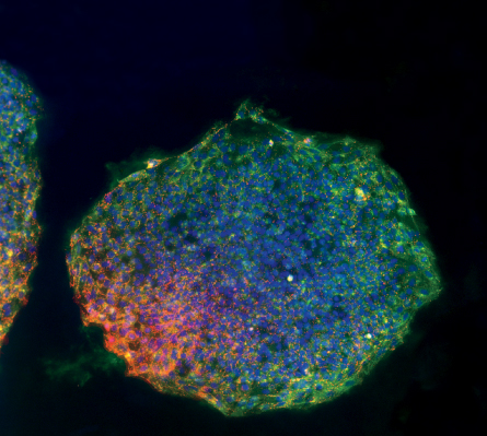 POTENTIAL QUESTIONED Comparisons of embryonic stem cells and reprogrammed stem cells (colony shown) are leading scientists to question whether the reprogrammed cells can fully forget their past.