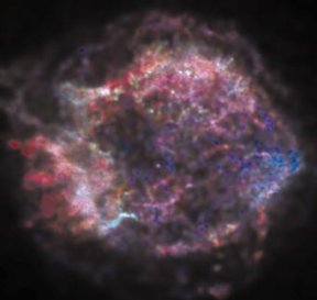 NASA’s Chandra X-Ray Observatory. CXCX rays (red dashes) striking Chandra’s four nested, barrel-shaped mirrors that make up its telescope. CXC/D. BarryThe supernova remnant Cassiopeia A.