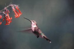 So how do hummingbirds know a flower’s been robbed? Orinthologists don’t think the birds sniff out nectar, so do they check for holes? Irwin snipped holes in one set of flowers and left another intact. She removed nectar from all the blossoms via a syringe put down the flower’s tube, then replaced it in a fraction of both the snipped and the unsnipped blooms. When hummingbirds cruised the array, they picked out the flowers with nectar, regardless of holes. This coming summer, Irwin says, she hopes to test the possibility that the buzzing wings of the bird set a nectar-filled flower vibrating at a different rate from a robbed flower.