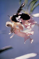 Even if robbers don’t bumble onto the flower’s sex organs, the interlopers may still come back later for a legitimate visit. William Morris of Duke University in Durham, N.C., has monitored bees crawling over Mertensia paniculata bluebells. On the first day a flower opens, its pink tube presents pollen to visitors. When a bloom reaches the age of 3 to 5 days, the tube darkens to blue and secretes nectar. Morris reports that two bumblebee species act as honorable pollinators when they collect pollen from the pink youngsters but turn to nectar robbery on the old, blue flowers. An individual bee frequently switches to and from crime. Is that bee a really a robber? Such muddles inspire Maloof and Irwin to talk about “robberlike pollinators.”