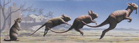 Small mammals that survived the dinosaur’s demise formed the template for a gigantic wave of mammalian evolution. In the age of the dinosaurs, mammalian fossils show enlarged eye sockets, adapted to night vision, says mammalian paleontologist Catherine Badgley of the University of Michigan in Ann Arbor. These skulking night creatures, none larger than an opossum, gave rise to modern mammals, whether human, hippo, or house rat. These include novel and bizarre forms, some of which went extinct about 11,000 years ago–wombats the size of hippos, 200-pound beavers, sloths that stood 9 feet tall on their hind legs, and other plus-size versions of some of today’s animals, she says.