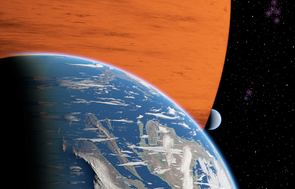 News Space Life has prospects on moons of giant extrasolar planets Earthlike bodies may orbit distant Jupiters By Andrew Grant January 18, 2013 at 5:53 pm - More than 2 years ago Share this:Share Share via email (Opens in new window) Email Click to share on Facebook (Opens in new window) Facebook Click to share on Reddit (Opens in new window) Reddit Click to share on X (Opens in new window) X Click to print (Opens in new window) Print Earth-sized moons in planetary systems trillions of miles away could be hotbeds for alien life, astronomers report in the January Astrobiology. EXOLIFE Jupiter-like gas giants in other solar systems (illustrated in orange) may host moons that could support life (foreground).