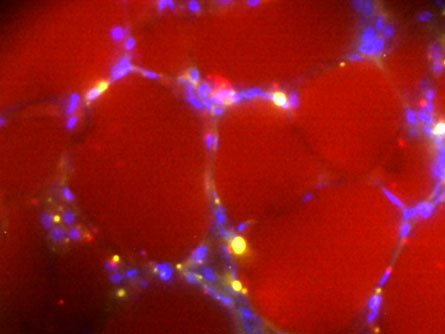 News Health & Medicine Linking obesity with leukemia relapses Fat may offer sanctuary for cancerous cells, a study in mice shows By Nathan Seppa September 22, 2009 at 2:36 pm - More than 2 years ago Share this:Share Share via email (Opens in new window) Email Click to share on Facebook (Opens in new window) Facebook Click to share on Reddit (Opens in new window) Reddit Click to share on X (Opens in new window) X Click to print (Opens in new window) Print In leukemia patients, excess fatty tissue allows cancerous cells to avoid destruction by chemotherapy drugs, a study in mice suggests. BLENDING IN This image shows fat cells (in red) from an obese mouse with leukemia.