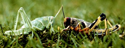 JEKYLL AND HYDE. The African desert locust in its solitary green form does little damage, but when it’s black and yellow, far-flying swarms can bring crop damage of biblical proportions.