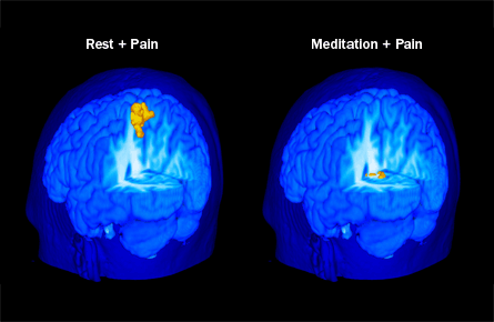 In the study, Coghill and his colleagues prodded 15 volunteers with a hot poker of sorts, then used MRI to watch their brains respond to the hot but humane torture. Subjects found the 49⁰ Celsius pulses, on average, 57 percent less unpleasant and 40 percent less intense while meditating as opposed to resting normally.