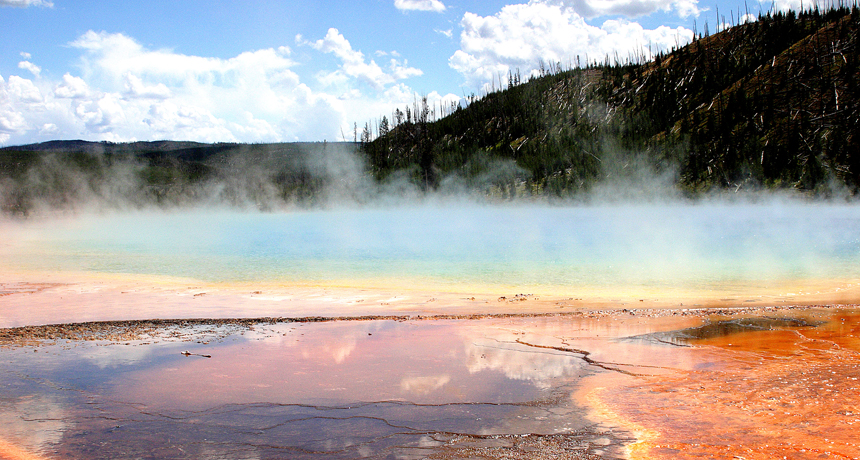 BUBBLING A hot spot deep in Earth’s mantle helps fuel the geothermal activity at Yellowstone National Park, shown. The hot spot also nourished a supervolcano that erupted 4.5 million years ago in Idaho when magma reservoirs quickly merged together, a new study suggests.