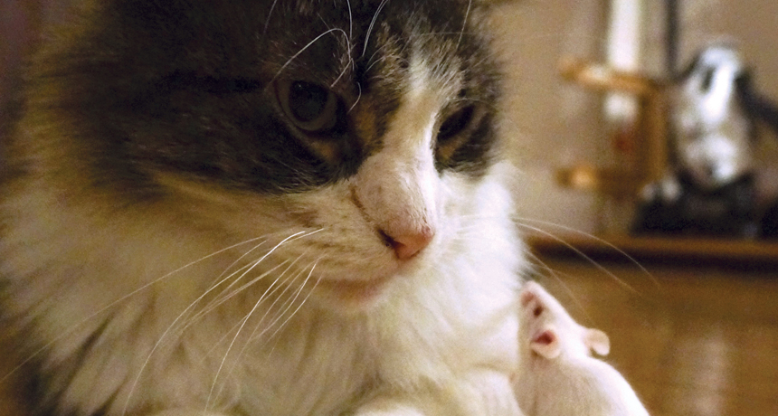 NO FEAR OF FELINES Mice permanently lose their fear of felines following infection with a parasite that cats carry. The brazen behavior carries on long after the infection clears.
