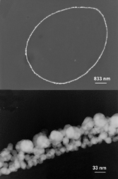 In the May 23 Angewandte Chemie International Edition, Mirkin’s team at Northwestern University describes how it cultured spores of the fungus Aspergillus niger in the presence of 13-nm-wide gold particles that aggregated on the fibrous hyphae. Once there, the gold particles, each of which was linked to multiple short strands of DNA, could bind an additional nanoscale component bearing complementary DNA strands. This provides a means for readily mixing and matching a variety of nanoscale building blocks into ever more sophisticated structures, Mirkin says.