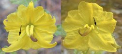 OPPOSITES ATTRACT. The left-leaning and right-leaning female organs of the species Solanum rostratum are indicated by the arrows.
