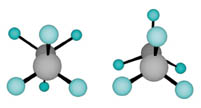 In these nearly end-on views of ethane, C2H6 , the front carbon atom (gray) partially blocks the rear one.