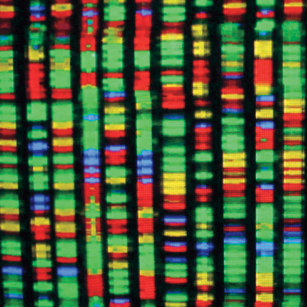Picking out and counting the genes among the billions of DNA letters (shown here as four different colors) that make up the human genome has proved daunting.