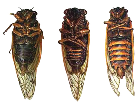 The insects that unearthed themselves to breed in 2013 belong to three distinct species. You need only flip them over to see some differences, written in the varieties of their orange markings.
