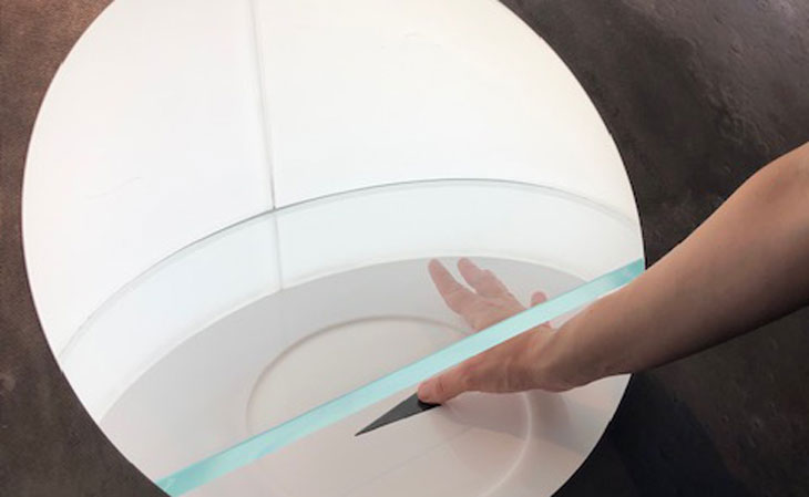 I struggle to stretch my fingers into the gloves, which wave like balloons from the higher pressure inside the cabinet. The rubber wraps tightly around my arms: I almost feel like I’m pushing my arms into a thick liquid. I clumsily pick up a stainless steel hammer and a chisel inside the cabinet. I mimic chipping a corner off of an imaginary sample. Even without a real moon rock, I find myself laughing with joy.