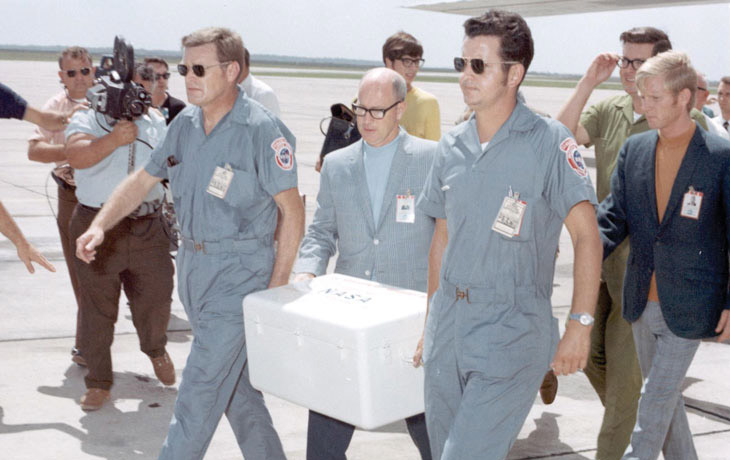 When nothing happened, seven kilograms or so of the Apollo 11 rocks were parceled out to laboratories around the world, as far from Houston as Tokyo and Canberra, Australia. Researchers studying those rocks agreed not to publish their findings before getting together to discuss them at the first Lunar Science Conference, which was held in Houston in January 1970.