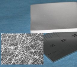 NO MORE OUCH. A fibrinogen bandage (white) is made of a network of threads just 80 nanometers thick (inset).