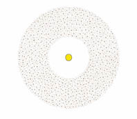 Schematic of warm dust surrounding the nearby star Zeta Leporis (central object) at a distance of less than 6.1