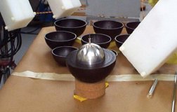 To measure neptunium-237’s critical mass, the Los Alamos team cast a softball-size, 6-kg sphere of the metal that could nestle within two hemispheres of uranium. The researchers then brought the uranium hemispheres together over the course of