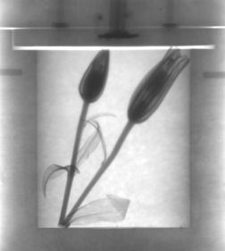 BEAT SUPERMAN. A neutron beam imaged these Asian lilies inside a lead cask, where X rays cannot reach. Neutrons could be used to detect radioactive materials in cargo. Daniel Hussey/NIST