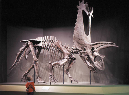 MUSEUM PIECE A reconstruction of an early giant among horned dinosaurs still carries the label Pentaceratops among the fossils in the Sam Noble Museum of Natural History in Norman, Okla.,