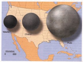 Illustration shows the relative sizes of Varuna, Charon, and Pluto. Nature