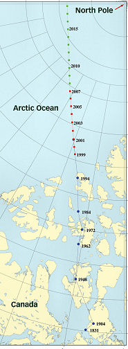 At its current rate, the north magnetic pole will pass within 400 km of the north geographic pole in 2018, Olsen and Mandea report. Because of the chaotic nature of the field-generating processes in the outer core, predicting the pole’s location more than a decade into the future is tricky, says Olsen. Nevertheless, the pole has been moving toward the northwest, although with varying speed, for more than a century.
