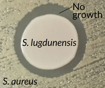 From nasal secretion samples, the team isolated 90 strains of different Staphylococcus species. Of these, one bacterium, S. lugdunensis, killed S. aureus when the two were grown together in a dish. Introducing a variety of mutations into S. lugdunensis produced a strain that didn’t kill. The missing gene, the team showed, normally produced an antibiotic, which the researchers named lugdunin; it represents the first example of a new class of antibiotic.