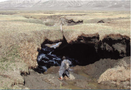 Daniel Fortier spends his summers studying the permafrost on Bylot Island, high in the eastern Canadian Arctic. While hiking there early in the 1999 field season, he distinctly heard the sound of running water yet saw no streams nearby. “I thought to myself, ‘Where is this sound coming from?'” says Fortier. “So, like a good researcher, I started to dig.”
