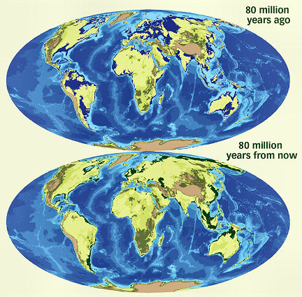 About 80 million years ago, no land-based ice sheets existed. Also, a larger proportion of the world’s ocean crust rode higher than now on underlying mantle, so oceans were shallower.