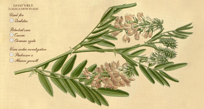 A NEW TRICK Known as goat’s rue, holy hay, French lilac and Italian fitch, Galega officinalis was an ancient herbal remedy. Now its derivative, the diabetes drug metformin, may find new uses treating cancer and other diseases.