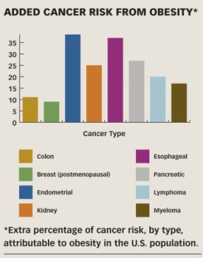 Poor diet and lack of exercise, regardless of weight, can also increase a person’s chance of developing cancer, Colditz says. He adds that other cancer culprits include pollutants, toxins in food, and infectious agents.