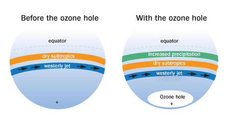 From high above the South Pole, Earth’s ozone hole can affect rainfall as far away as the tropics, scientists have found.