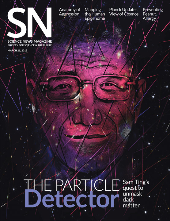 Physicist Sam Ting spent years lobbying to put a cosmic ray detector aboard the International Space Station. Now he’s using the Alpha Magnetic Spectrometer to collect particles that may shed light on the nature of dark matter, as Andrew Grant reported in “Eyes on the invisible prize” (SN: 3/21/15, p.