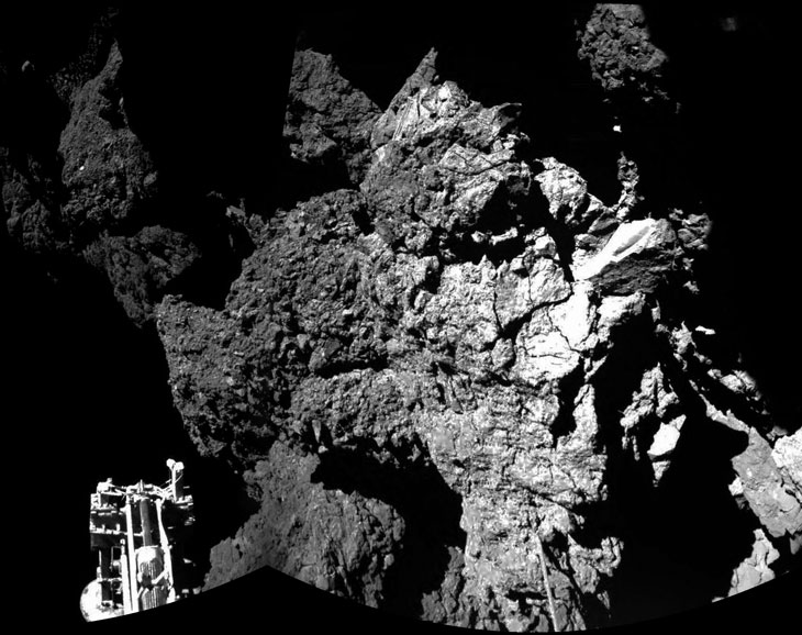 DARMSTADT, GERMANY — Philae may be in a tough spot, literally. After touching down on comet 67P/Churyumov-Gerasimenko, the Rosetta mission’s robot has been beaming back striking but somewhat unsettling views of the comet.