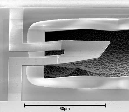 QUANTUM OBJECT A close-up view of the very small resonator, taken with a scanning electron microscope, used in the first demonstration of quantum behavior in an everyday object.