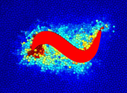 BUMP AND GRIND Computer simulations of lizards swimming through buckets of small glass beads can give researchers a look at how every single bead responds as the reptile passes. Yang Ding