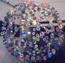 A towering stack of 642 compact disks could represent an impressive music or software collection. The same number of CDs strung together into iridescent arcs can be a mathematical sculpture.