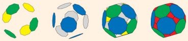 The new technique generates a variety of known polyhedra, including most of the Archimedean solids, and infinitely many new ones. One particularly striking product is a polyhedron made up of 20 regular nine-sided polygons (called enneagons), 12 regular pentagons, and 60 isosceles triangles. “You rarely see enneagons in a polyhedron,” Hart comments.