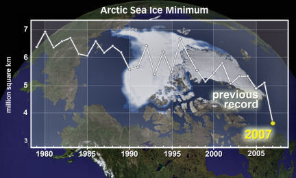 A variety of climatological factors converged this year in a perfect storm that dramatically melted the Arctic Ocean’s ice cover to a record low. The abrupt downturn could be a harbinger of ice-poor summers for decades to come.