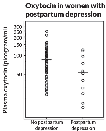 Leuner and other scientists emphasize that the oxytocin story is complex. In 2017, in a study reported in Depression & Anxiety, women without a history of depression who received oxytocin — which is often given to promote contractions or stem bleeding after delivery — had a 32 percent higher likelihood of developing postpartum depression than women who did not receive the hormone. In more than 46,000 births, 5 percent of women who did not receive the hormone were diagnosed with depression, compared with 7 percent who did.