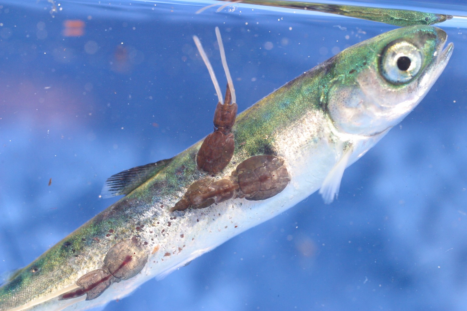 THE LICE LIFE Young wild salmon that pick up sea lice near fish farms engage in riskier behavior than their lice-free counterparts IMAGE CREDIT: Alexandra Morton