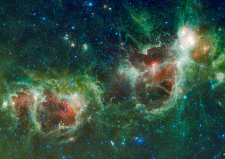 HEART AND SOUL NASA’s Wide-field Infrared Survey Explorer recently recorded this false-color mosaic of two vast star-forming regions in the Milky Way about 6,000 light-years from Earth: the Heart nebula (right) and the Soul nebula (left).