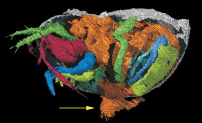 Ancient marine sediments have yielded what scientists contend is the world’s oldest fossil of malehood. Fossils of ostracods, a type of aquatic bivalve crustacean, typically include only shells, says David J. Siveter of England’s University of Leicester. Now, he and his colleagues have constructed a virtual model of an unusually well-preserved, 5-millimeter-long specimen by grinding away hair-thin layers of rock, photographing the exposed surfaces, and digitally reassembling the slices.