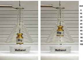 In a refinement of the approach, the team fashioned the platinum-coated shape-memory wires into a coiled spring that lifted a weight of up to half a kilogram when exposed to methanol.